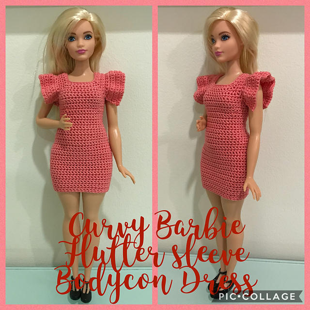 Curvy Barbie Flutter Sleeve Bodycon Dress