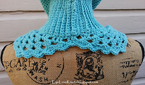 I made the ribbing wide so that it could be pulled up over my face to keep it and my ears warm if it was windy. When not windy, just fold over the ribbing, and it makes for a beautiful collar to go with the granny stitch handkerchief-like pattern.