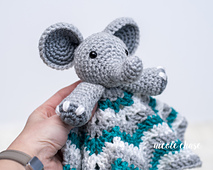 Add a Hug Me Elephant Lovey to any jungle themed nursery. This pattern is a great amigurumi project for beginners. The elephant pieces are worked in the round, with a classic star blanket giving a chevron appearance. For a girl’s lovey, add a bow in front of one of the ears.