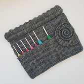 This crochet hook roll is my nod to the beautiful ammonites and sparkly iron pyrite that grace the shores of the Jurassic Coast.