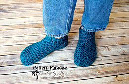 These slippers are lightening speed to make. I've provided a large range of sizing as well as three different widths. Use bulky weight for a warm, comfortable slipper that works up in less than an hour!