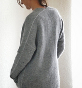 Start working the back and shape it with short rows. Continue to work the back in garter sts until the length of the armhole. Then pick up the stitches for the front and work both fronts alike until the length of the armhole. Join the fronts and back to work the body in garter sts and short row front shaping down to the bottom ribbing (or optional pockets). Pick up the sleeves sts to work the sleeves in rounds.