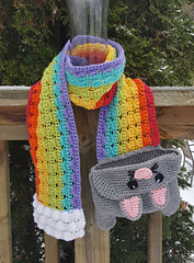 Part cat amigurumi, part rainbow scarf, all adorable! Use this crochet pattern to make your own Rainbow Barf Cat Plush Scarf.