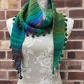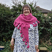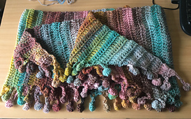 The Praze an Beeble Shawl, is a crescent shaped shawl, worked from point to point - sideways - with the bobble edging worked as you go along. It is an easy shawl, but it can be a bit tricky to see where you are going at the start—there is a photo tutorial in the pattern, and a video will be uploaded and links sent to you. The pattern uses mostly treble crochets and chains. There are some increases to start and decreases using tr2tog.