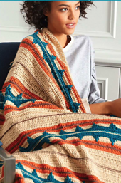 Crochet an on trend southwestern stripe blanket! With simple stripes worked lengthwise and added spike stitches this beautiful Navajo inspired design is further elevated by Caron Simply Soft's lustre & sheen. Plus, with a wide range of colors to choose from you can crochet this blanket for any space in your home!