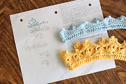 I designed a couple little crochet crowns for my friends’ baby, and decided to share them. These are a great project for a beginner crocheter looking to stretch their skills, as they let you play around with a couple stitch patterns and possibly learn some new techniques, and also an easy but satisfying project for more experienced crocheters.