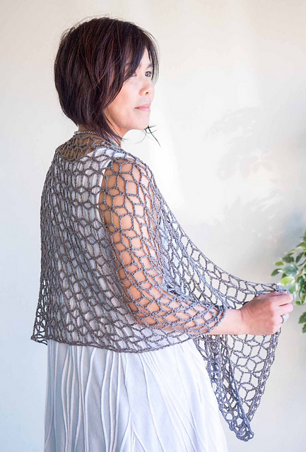 When I saw this stitch pattern for the first time, it caught my eyes. It is so simple and beautiful. I felt “this is the reason I want to crochet”. This is the type of fabric only crochet can make, I think. I was thinking of designing a mobius cowl, combining this stitch with another stitch pattern, like my “Duality” knit cowl. But once I started working this stich pattern with DanDoh Linen yarn, it turned out to be beautiful by itself, and it became a rectangular shawl. I hope many people want to try making this beautiful crochet shawl.