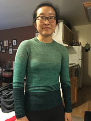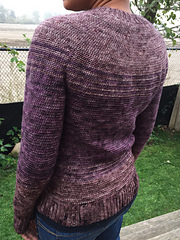 A classic, fitted sweater with a circular yoke and featuring thumb holes in the cuff.