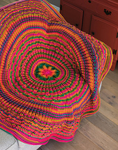Beautiful, textured and unique—this mandala afghan is like nothing you've ever seen before! Crochet with 15 skeins of preppy stripe worsted-weight Red Heart Super Saver using U.S. size H/8/5mm hook. Finished size is 58" in diameter.