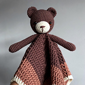 With this pattern you can crochet a beautiful bear lovey / security blanket / comforter / snuggle which is going to be loved by your little one. It is both soft toy and a blanket/ comforter, two in one really, toy to play with and a comforter to sleep with :)