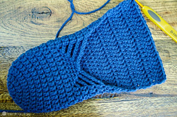 This slippers pattern starts at the toe working in rounds, then in rows until desired length is reached, then around the top to cinch things up!