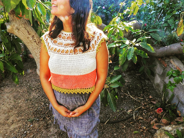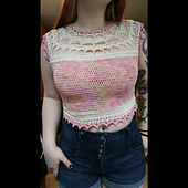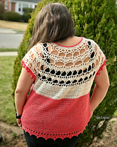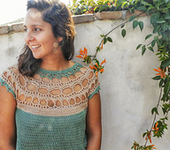 Xochitl is a loose Summer/Spring garment with a lace yoke and details around the bottom and sleeves meant to emulate the flower embroidery designs typically made by Mexican artisans. It’s worked top-bottom, making it seamless. Length is adjustable to taste, making it a beautiful, yet versatile item.
