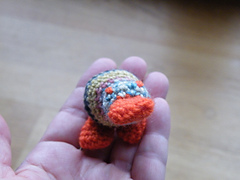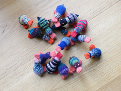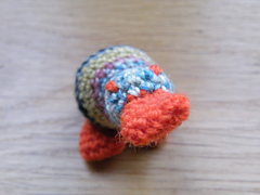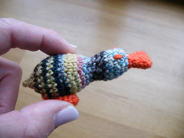 Die Ente wird aus Garnresten von Sockenwolle 4-fach hergestellt. So wirkt sie am besten.
