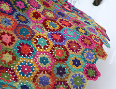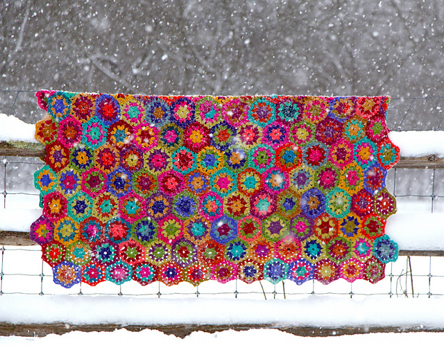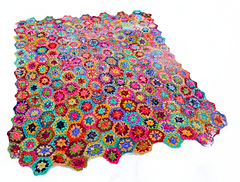 It measures 53" x 58". I find this to be a good size for using as a blanket on a couch. It is big enough to take a nap under. Of course, you can make yours larger by adding more hexagons.