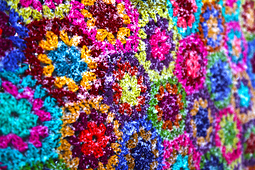 I used a selection of colors that were included in my two different yarn lines over the years. Sadly both the lines are discontinued but you may be able to find them on-line.