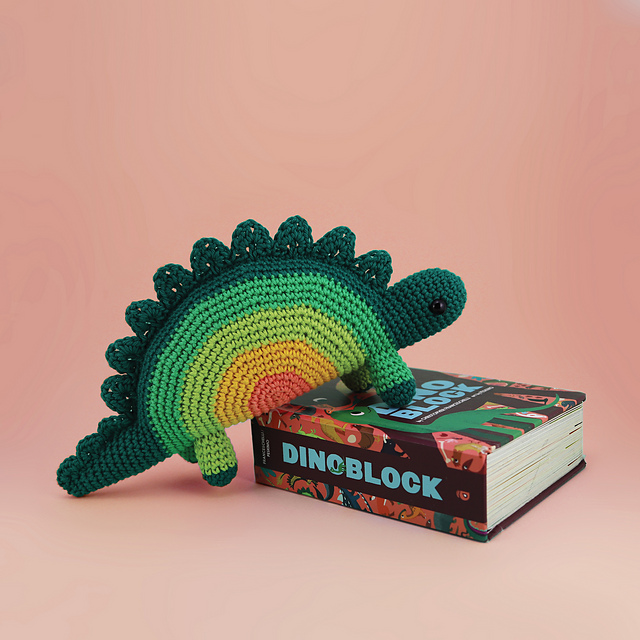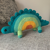 Here comes Horace, a happy Stegasaurus. We don't know for sure if dinosaurs of old were brown,green, stripy or dotty - so this dinosaur is as colourful as a rainbow!