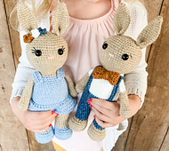 Meet the Berry Patch Bunnies! These fun hopping forest friends measure about 14 inches tall and work up quickly. With this listing you receive a printable PDF pattern for both the girl and boy version!
