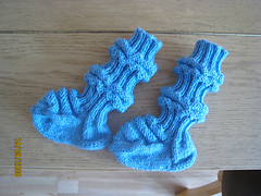 In early 1940, Terttu Latvala's mother Kerttu Latvala was evacuating ahead of World War II battles along with her 2-month-old baby daughter. Her train trip from Vaasa (coastal Finland) was delayed due to a section of the railroad tracks having been destroyed by bombings. A fellow passenger, a retired needlework teacher, took pity on the un-bootied little feet of the baby girl, and during the delay, unraveled yarn from her own white hand-knit sweater, and used it to make the baby a pair of socks.