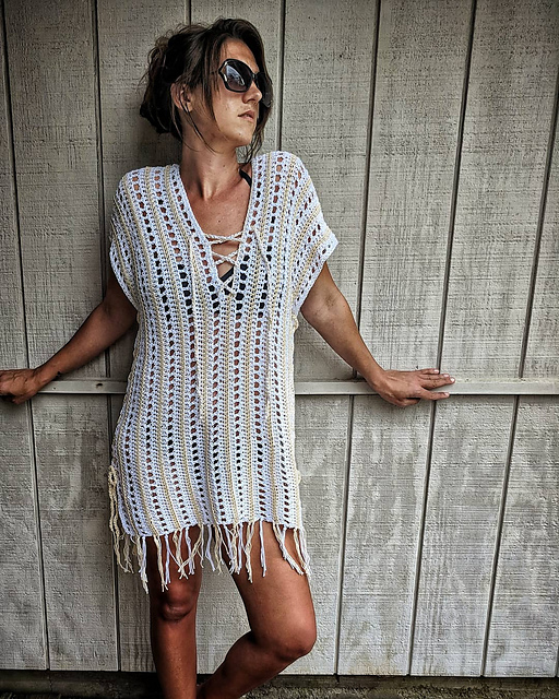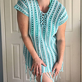 This Cover Up was designed with every woman in mind. Not only is it written for sizes XXS - 4XL, but it is also adjustable within each size with lace-up cords on the sides of the garment to allow for extra room if needed. The pattern also give instructions on how to adjust for length.