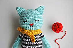 The cat is 12 1/2 inches tall and I used a 3mm hook with Caron Simply Soft Yarn.
