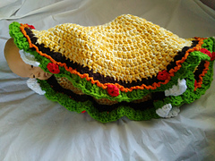 My test model turned out to be 26" across, but adding more rows, blanket can be made in any size.