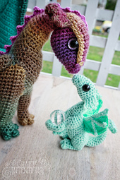 These teensy tiny newborn babies are so new to this world, they can't even fly yet! Make a whole nestful to snuggle as your very own! The effect is amigurumi-like, though there are some distinct techniques used that are not used in single crochet-only amigurumi. The gauge is not crucial to the pattern as long as the stitches are tight enough to hold stuffing. Includes many options for different positions that you can use to create your own unique Dragon! The perfect toy for a girl or boy, young or old!