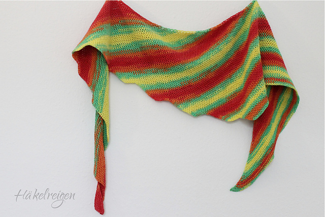 Glücksdrache / Lucky Dragon is a dragon tail in Tunisian Full Stitch. It has a slightly curved edge and gentle spikes. It can be worked in any yarn weight and in any size.