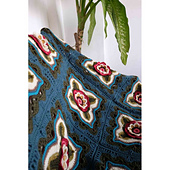 Designed by Jane Crowfoot in a collaboration with West Yorkshire Spinners. The blanket was inspired by Jane's trips to The Green Hotel in Mysore, India, and in particular some decorative tiles on a Victorian washstand found within the hotel.