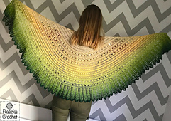 Dandelion Lane is a crescent shawl, worked top down from the center. The crescent shape makes this shawl very versatile and creates a modern and elegant look.