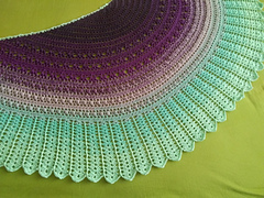 The shawl can be made from light fingering or fingering weight yarns (360 - 420 m/100g). You can also use 3 or 4 ply gradient cakes, Scheepjes Whirl or other gradient yarns of suitable weight.
