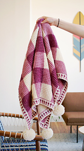 The Sweet Gingham Blanket was designed to bring rustic charm to your nursery. Simple stitching and colorwork techniques make this a fun and quick project, even for beginners who haven't tried Tunisian crochet yet. Play around with color to make a blanket that is perfect for your little angel.