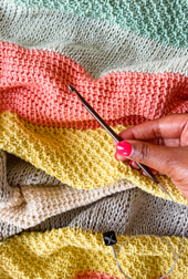 The Sweet Stripes Baby Blanket is the perfect project for beginner Tunisian crocheters looking for the next challenge. Varying stitch patterns weave through a series of 6 colors to make the blanket body, and it's all finished with a simple single crochet border and a row of picots.