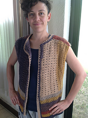 The construction is modular, with minimal seaming. The stitch pattern alternates rows of double-crochet stitches with rows of crossed double crochet stitches to provide an interesting texture - the top section is made in vertical rows and the bottom section in horizontal rows to further intrigue the eye.