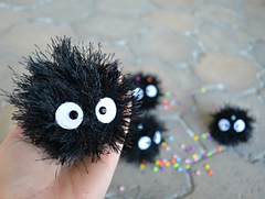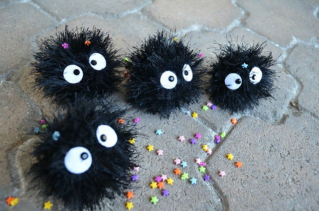This is a free crochet pattern to help you create an adorable Soot Sprite amigurumi. Soot Sprites are little fuzzy black creatures (a bit like dust bunnies) made famous in the Studio Ghibli films *My Neighbor Totoro* and *Spirited Away*.
