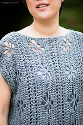 In the Wildflowers Tunic, poppy stitches and eyelets are repeated to create a sweet lacy-but-not-too-lacy top. You can make this any size you want by customizing the pattern repeats.