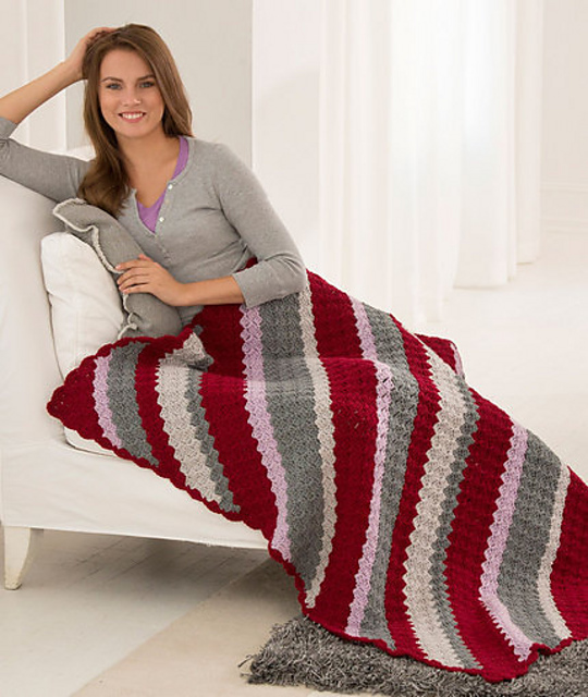 RED HEART® Classic™: 4 skeins each 917 Cardinal A and 401 Nickel C and 2 skeins each 584 Lavender B and 412 Silver D
