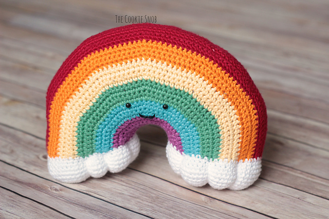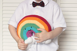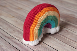 As written, the rainbow is about 10" x 6.5", but can be adjusted to another size by following the basic increase/decrease pattern. If you're a loose crocheter, I recommend you go down at least one hook size.