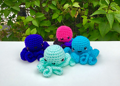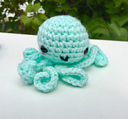 The finished octopus plush measures about 4" in length including curled tentacles. To complete this pattern, you will need a D/3 (3.25 MM) crochet hook, worsted weight (weight category "4") yarn, scissors, a yarn needle, 9 mm safety eyes, fiberfill stuffing, and a yarn needle. (Pattern includes full/detailed supplies list.)