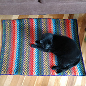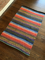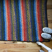 Felting in the washing machine utterly transforms the piece. Then, you cut a quick and painless steek and apply the most minimal of edgings. The result: a cushy, colorful mat that will make getting out of bed a warm and pleasant experience.