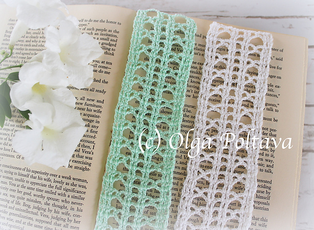 This is a very simple pattern for a lace bookmark. No fancy stitches here, only chains, single crochets, and double crochets. Can be made of any length and used as a trim/edging.