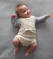 The romper is worked flat in stocking stitch, it has a beautiful rib in the back waist and leg openings.