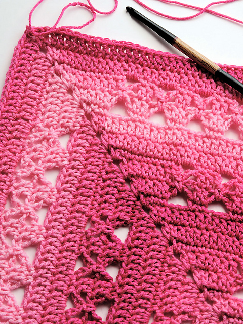 I am so in love with the incredible shading in Red Heart Super Saver Ombre yarn. Look at that yummy gradient! This pattern is designed specifically for gradient and other cake striping yarns. You will love it!