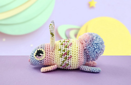 Mars the Bunny is an almost entirely no-sew amigurumi. Only the eyes and pompom tail are sewn on, and the nose is made with a few simple stitches. The pattern also includes a crocheted tail that you can make in one piece with the body if you prefer. The ears and limbs will be joined by crocheting as you go.