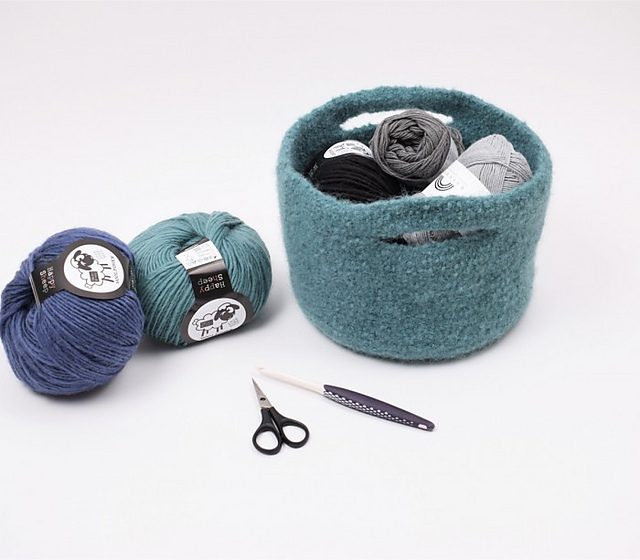 A smart and practical little [yarn bag][1] - Perfect for storing yarn and accessories on the go or as a sweet little basket for your current projects. It’s made using [Woolpower from Happy Sheep][2] which is perfect for felting.