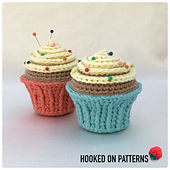 **This crochet pattern is FREE to view online on my website https://hookedonpatterns.com/crochet-blog/free-cupcake-pin-cushion-crochet-pattern**