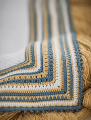 Começa-se por trabalhar o corpo principal da manta e depois vai-se adicionando uma barra larga.