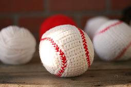 In this pattern I used: Caron One Pound in White for the main ball and Caron One Pound in Scarlet for the stitching.