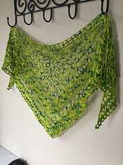 The shawl is worked in rows in one piece with continuous border added in the round. Because the shawl is worked bottom-up, its length is easily adjusted.