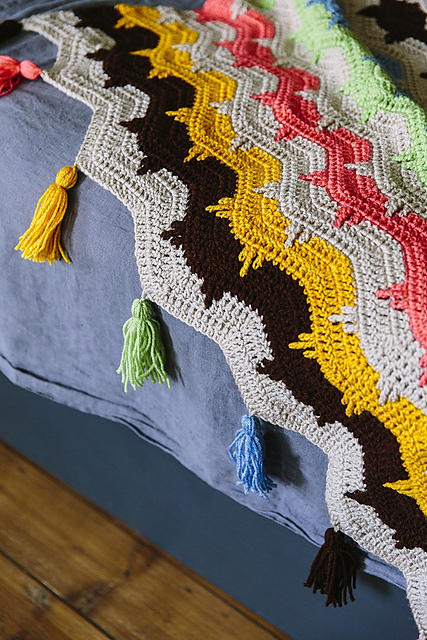 This “cat’s claw” geometric twist combines retro colours and a ripple pattern to make this throw a total vintage-meets-modern affair!
