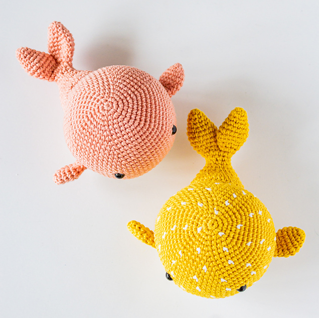 Here is another free pattern! This time its kind of a 'two-for-one.' Wallace and Wanda are both adorable whales. Wanda is a solid ice-green shade and Wallace has a fun spotted body which was made using a fair isle color dot pattern. I hope you enjoy making these two cuties!